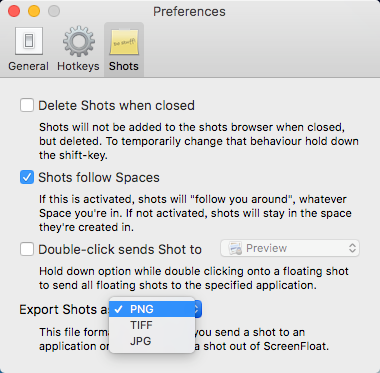 截取的圖片可選擇 PNG、TIFF、JPG 格式,視需求調整。