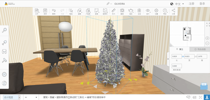 找到剛剛放進來的聖誕樹了,從這個角度來調整應該更清楚,選取後可再進行複製、隱藏或刪除。