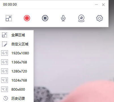 從功能列可更改錄製區域,提供常用的幾個尺寸,也能自訂或使用歷史紀錄。