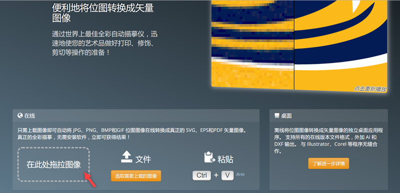 在線使用就直接將要處理的圖片拖進去,或點上傳即可,但如果需要下載處理成果有限制的,後面會講到。
