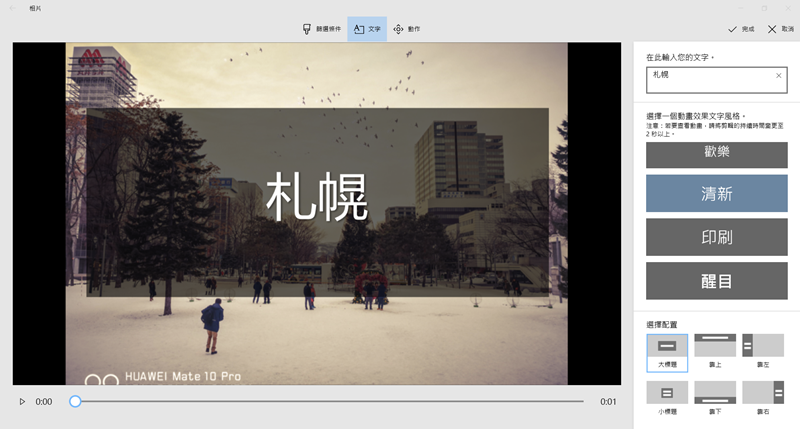 加個文字上去,先選個風格來套用,點擊同時可在左方預覽效果,像這個清新風就不錯,再視類型選擇文字配置。