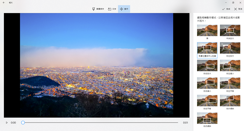 動作模式就跟一般影音編輯軟體的動畫、動態效果是一樣的,雖然沒那麼豐富那基本的上下左右放大、縮小都有。