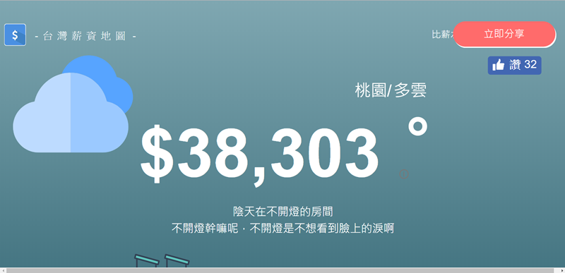 阿湯居住的桃園是陰天,月薪平均 38,303 元,阿湯回憶了一下身邊朋友分享的經驗,是覺得算準,至少比政府調查準多了。