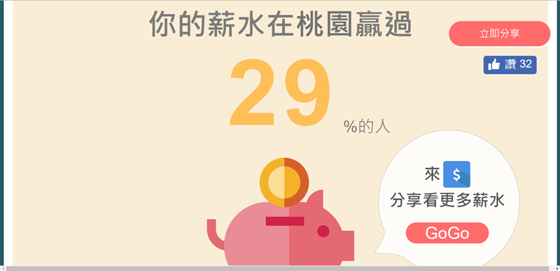 當然也可以輸入自己的薪水來比比看,假設三萬好了。
