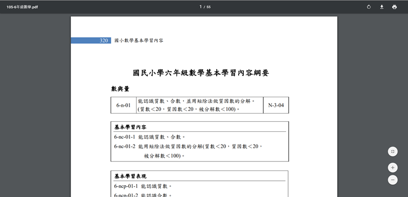 像這個國小數學的學習內容綱要,就涵蓋每章的學習內容與目標,可做為參考。