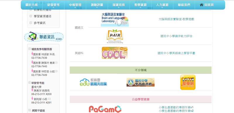 教學教材連結的資源比較多,包含國英數的教材原型。