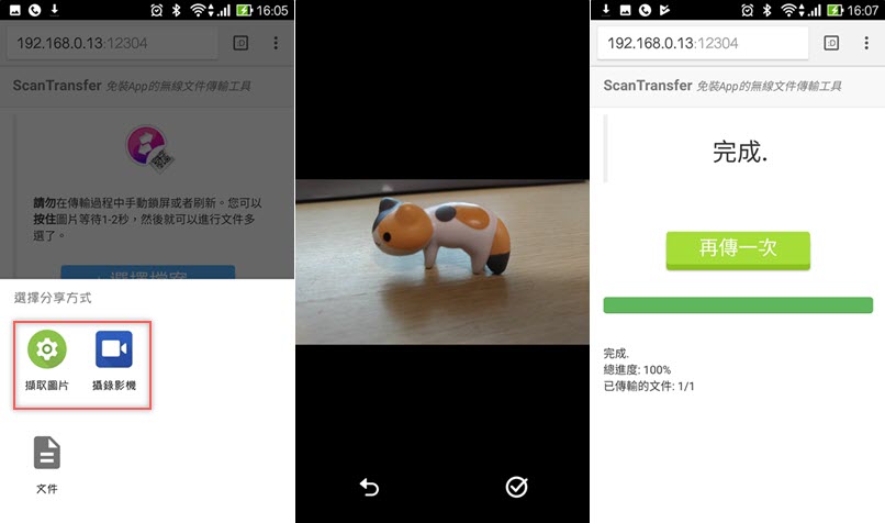 可以用相機拍攝照片或影片,完後後勾選就會快速上傳。