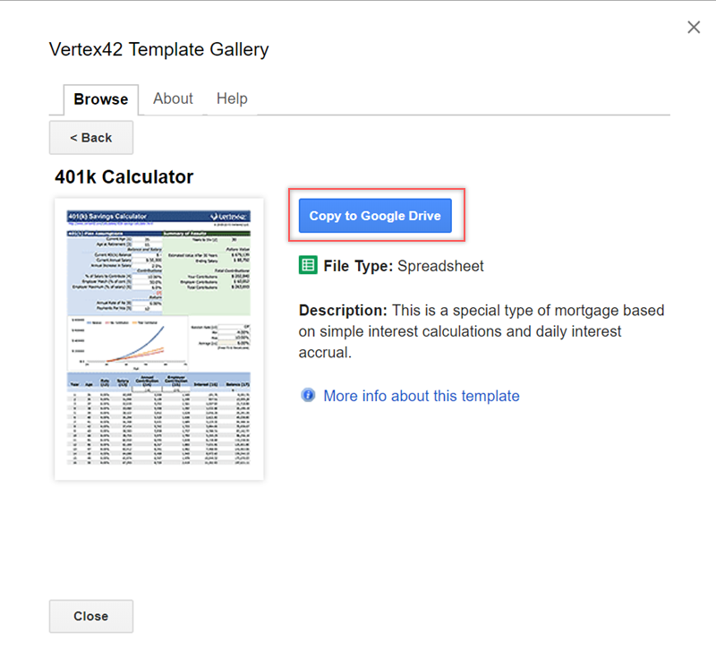 隨便選一個來看,雖然說阿湯這個外掛是裝在 Google 文件,但選擇表格類的範本也是可以開啟的,點 Copy to Google Drive。