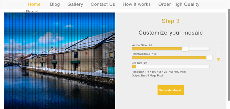 再來調整馬賽克的尺寸、長寬比及大小,但這邊會受試用版限制沒辦法調,大家就先用預設的覺得喜歡、有需求再升級吧,點生成。