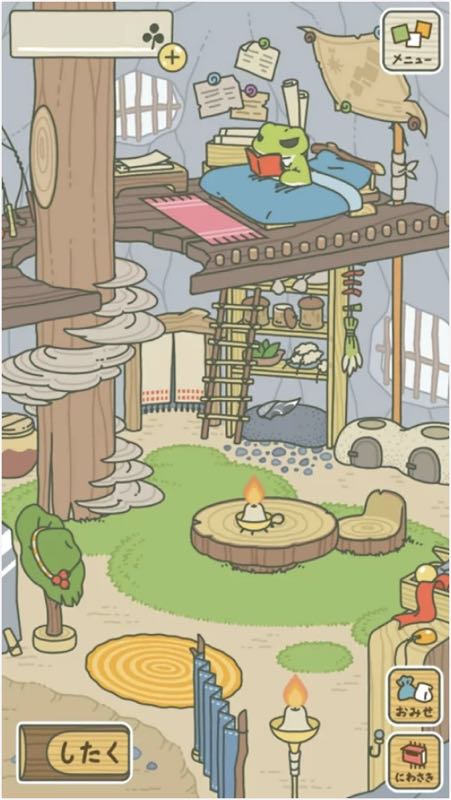 「旅行青蛙((旅かえる))」支援 iOS 與 Android 玩家下載,雖然這款遊戲目前只有日文介面,但主要就是我們可以先幫小青蛙取名字、透過屋子旁的池塘長出的三葉草來採集購買,商店中可以買到麵包、燈具、帳篷等,如果採收到四葉草還能當作護身符來保護小青蛙的平安旅行。採買好後就能點選背包行囊來放入想要給小青蛙帶的用品,第一次系統會帶我們操作一次,再加上操作介面也相當直覺,所以即便是看不懂日文的朋友也很容易上手。