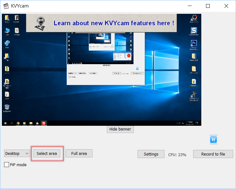 Movavi Screen Capture Studio 就不錯用,今天要分享的「KVYcam」除了有前面提到的那些功能外,還能讀取你的 WebCam,並提供畫中畫功能,讓你可以一邊視訊一邊看影片,或是操作桌面,等於是螢幕上能顯示的畫面都可以錄製起來,用在教學相當方便。