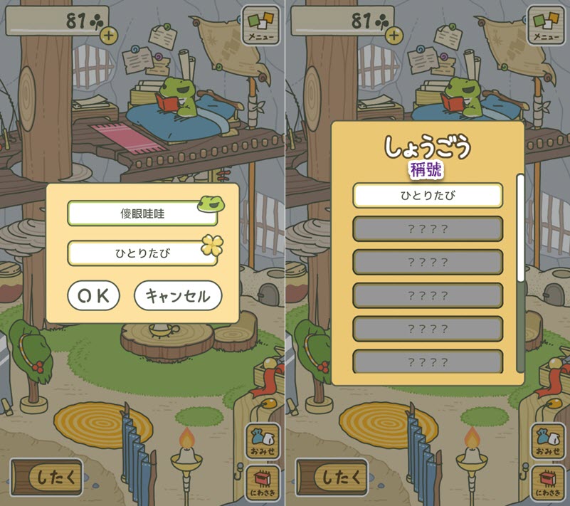 蛙蛙在家的時候點牠,可以查看姓名與配戴的稱號,稱號是沒有效果的,網路上流傳的效果都是謠言哦。
