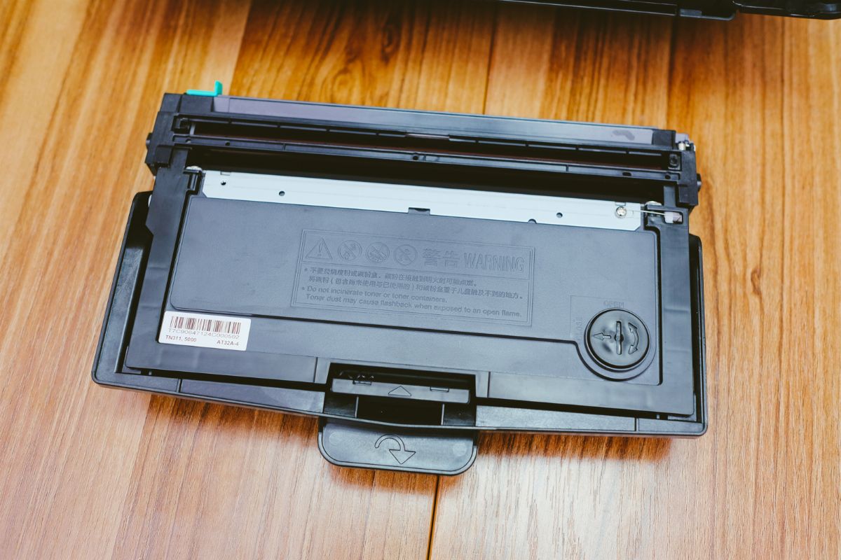 第一次使用別忘了將碳粉匣安裝置入,同樣在前方的位置開啟,就可以抽出碳粉匣。