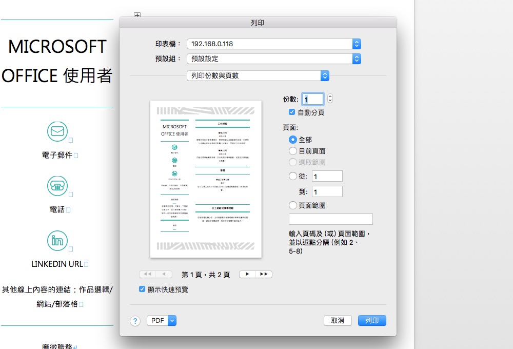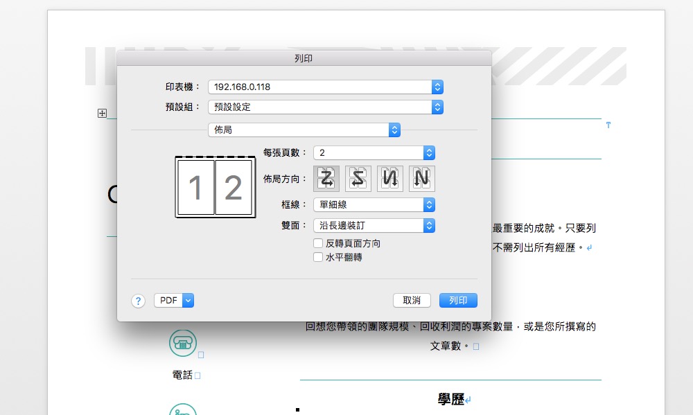 如果是透過 Office 或 PDF 軟體等,還可以有更多的佈局設定來選擇列印方式跟排版。