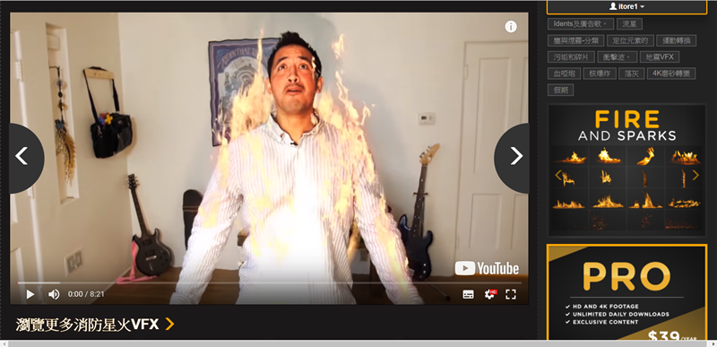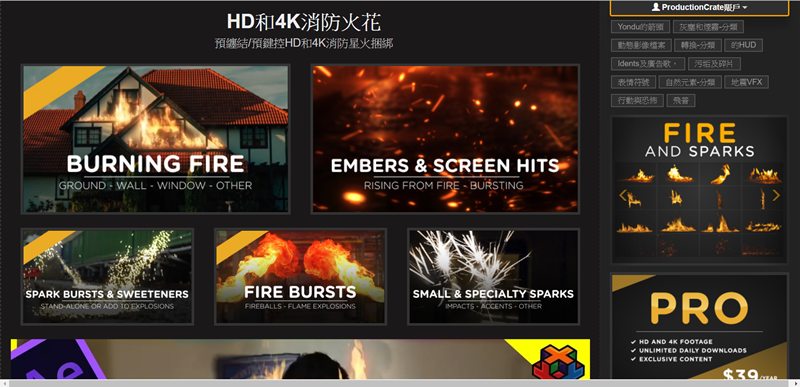 直接來看 HD 和 4K 消防火花專區,可以看到有像火燒房子、爆炸的火光與粉塵、光點式的火花等類型,十分豐富。