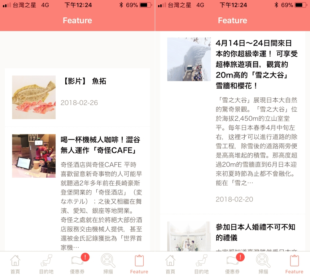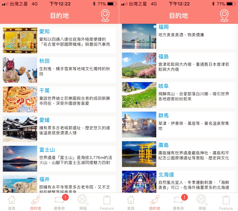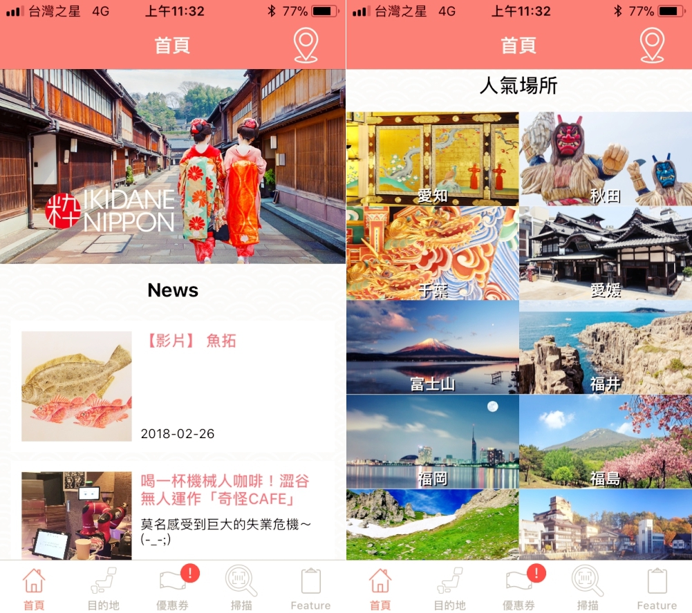 首先進入 APP 首頁時,會包括最新消息、人氣場所以及遊記等資訊,老實說阿湯要介紹這款 APP 前都在想應該不用寫太多吧,因為介面實在太簡單易用,相信大家很容易就能夠上手。