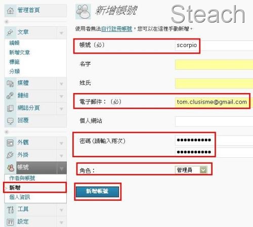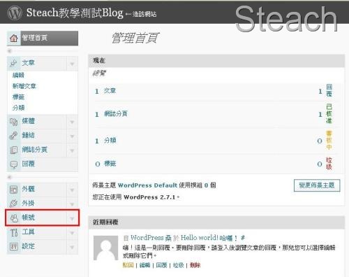Wordpress的後台畫面,是不是很清爽呢?不囉嗦,趕緊點選帳號創建自己的管理帳號哦!