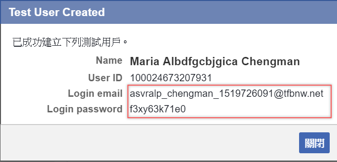 接著會自動產生一組用戶資料,包含姓名、ID 以及登入用的 Email 和密碼。
