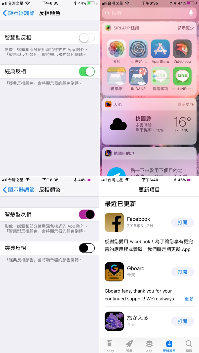 有兩種模式可選擇,智慧型反向會避開一些特定的 APP 讓螢幕呈現適當的顯示方式,經典反向則是將顯示器顏色整個倒轉,這邊阿湯的截圖跟實際顯示略有不同,建議大家直接套用試試看最清楚。