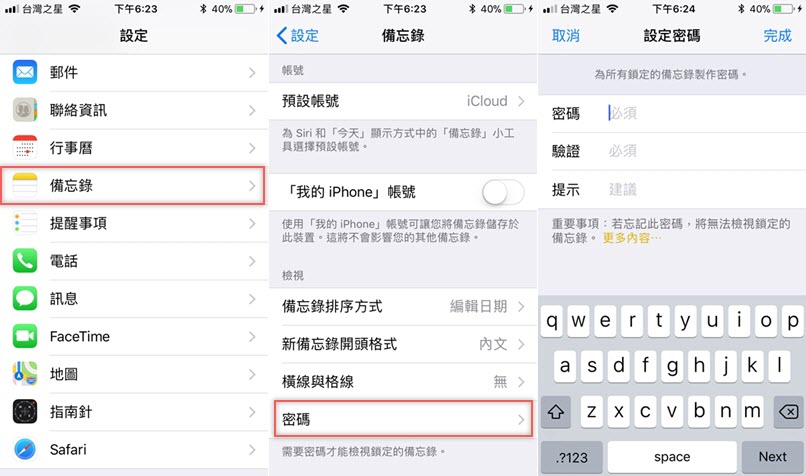 雖然手機本身就可以設密碼,但難保你手機沒上鎖的時候有人拿來看,尤其是有些人會在備忘錄寫一些不想被其他人知道的文字,那就可以再設個密碼或指紋辨識來加強。
