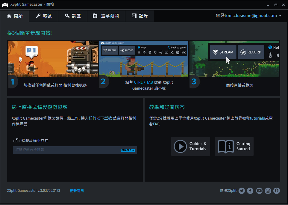 有在做遊戲實況的話,筆電預載就有 XSplit 軟體可以使用,直接開啟設定就能進行實況直播。