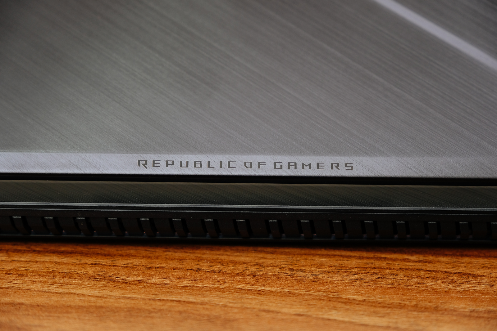 在 A 蓋的最下方有著低調的 ROG 全名字樣(REPUBLIC OF GAMERS 玩家共和國)。