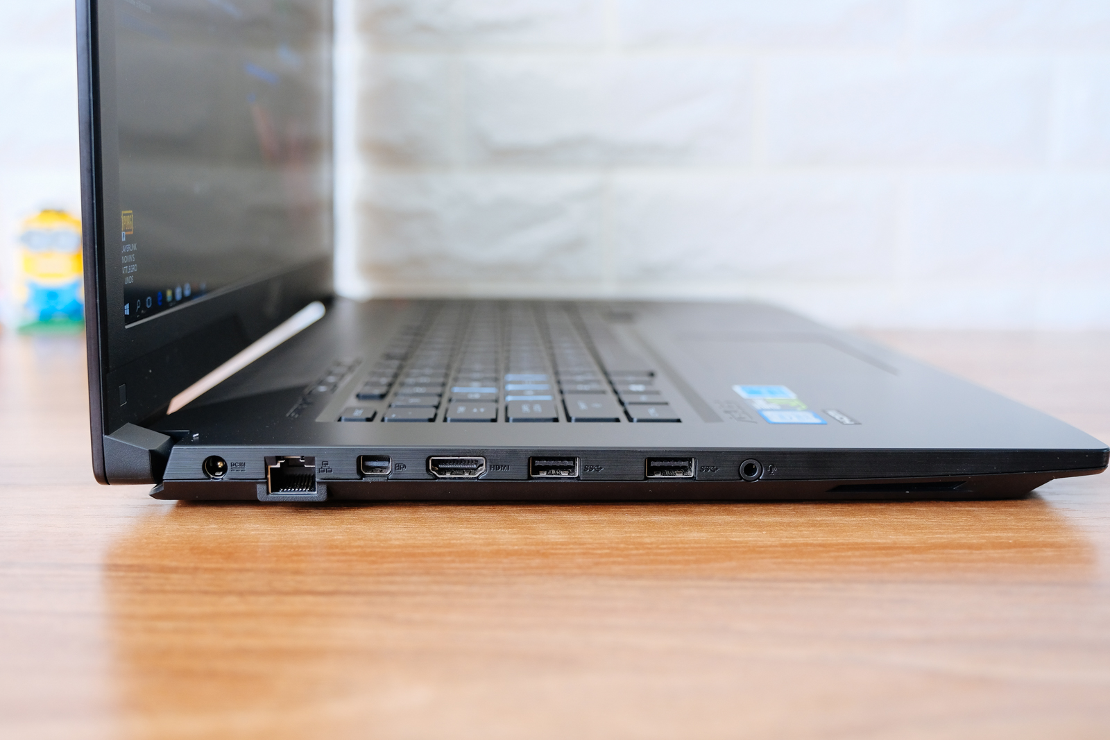 側邊的 I/O 埠包括電源孔、乙太網路、mini Display Port、HDMI、USB 3.0x2 以及 3.5mm 耳麥孔。