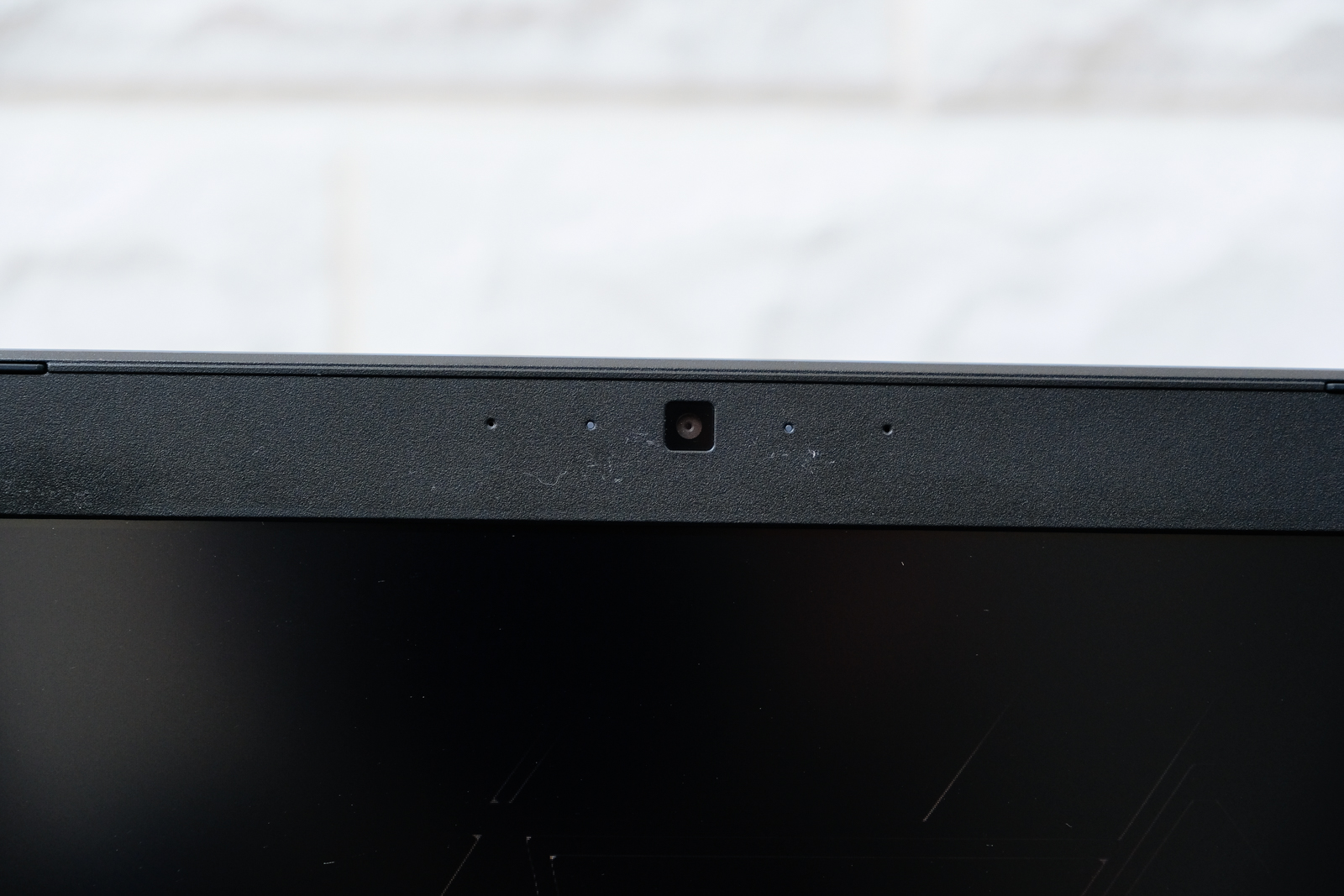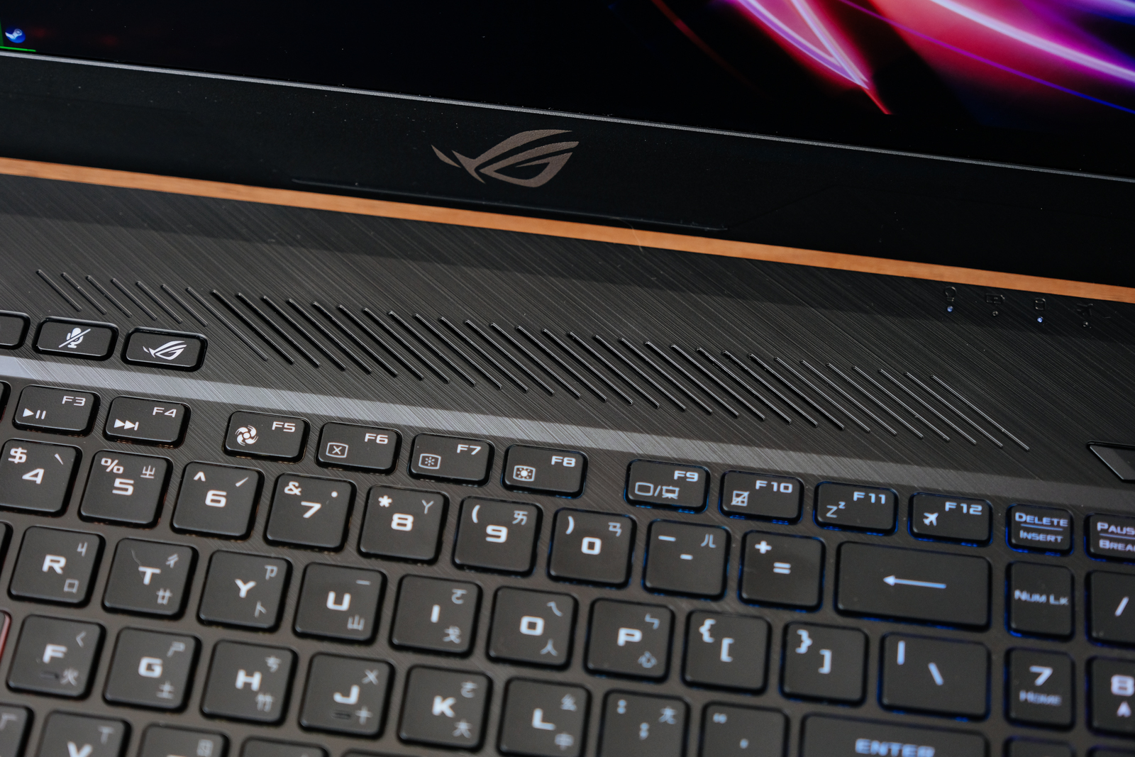 在鍵盤的上方散熱孔週圍也採用了髮絲紋設計。