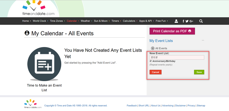 新增活動名稱,並勾選要不要每年重覆,點 Save。