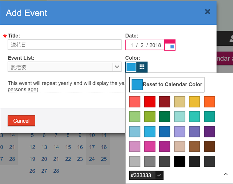 阿湯就建立一個愛老婆行事曆,再標註日期,編輯標題、顏色。