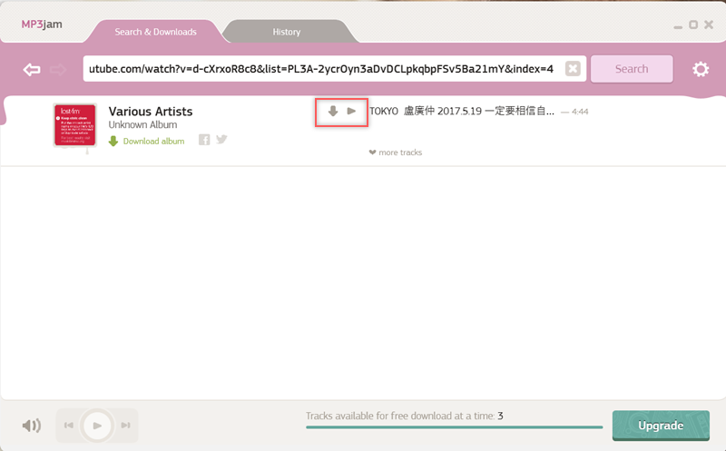 阿湯先用連結搜尋,可先試聽後沒問題再點下載圖示,程式會以預設的最高音質來轉檔。