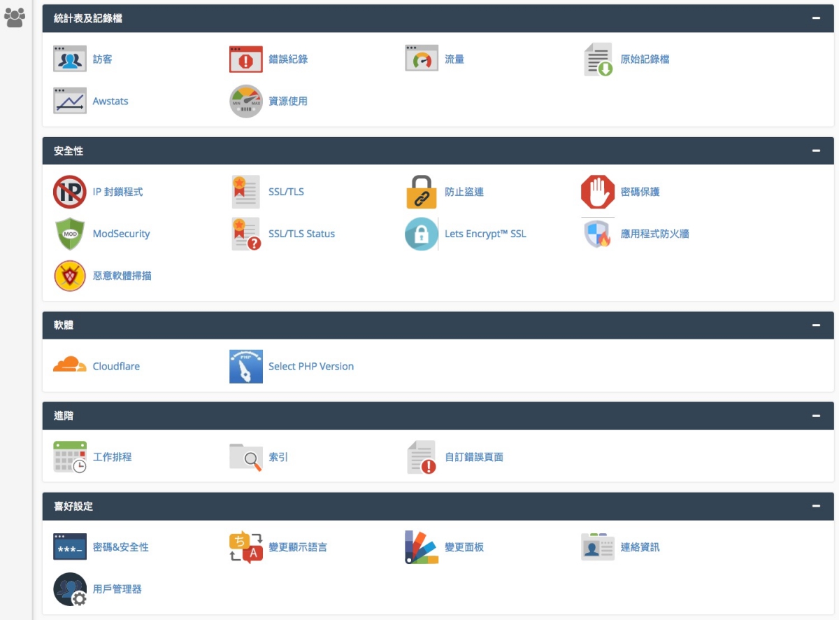 可以透過 cPanel 設定 PHP 版本、盜連機制、防火牆、惡意軟體掃描、SSL(https 連線),甚至是 Cloudflare 的 CDN 也都已經結合在一起,老實說阿湯從自己管理 VPS 主機後已經很久沒使用 cPanel,相較於好幾年前的版本又演進了不少,功能也愈來愈完善啊。