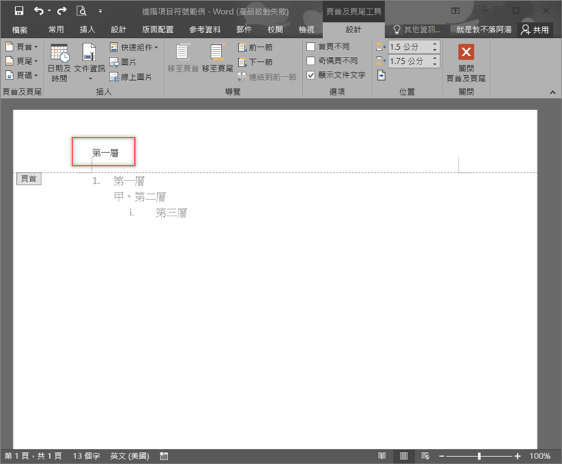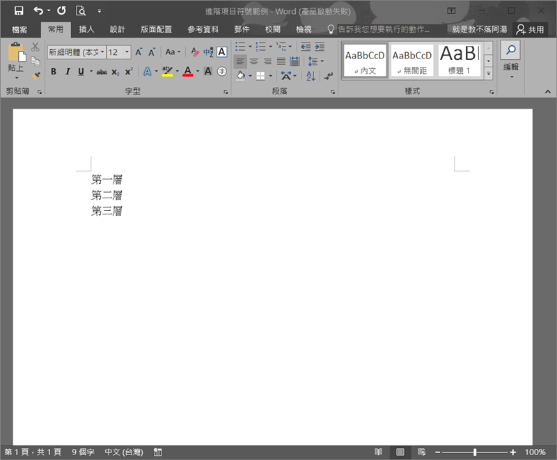 完成後原本的文字「第一層」前面就多了數字 1 了,還差一個點就自己手動輸入吧。
