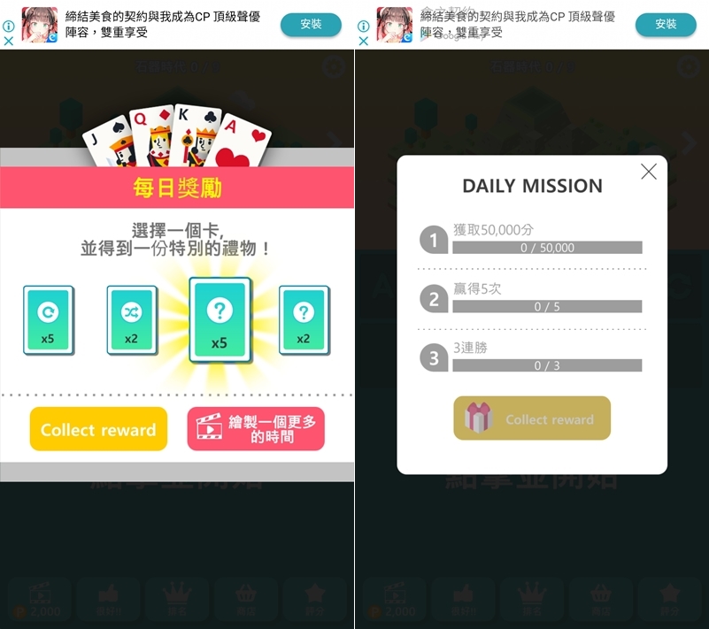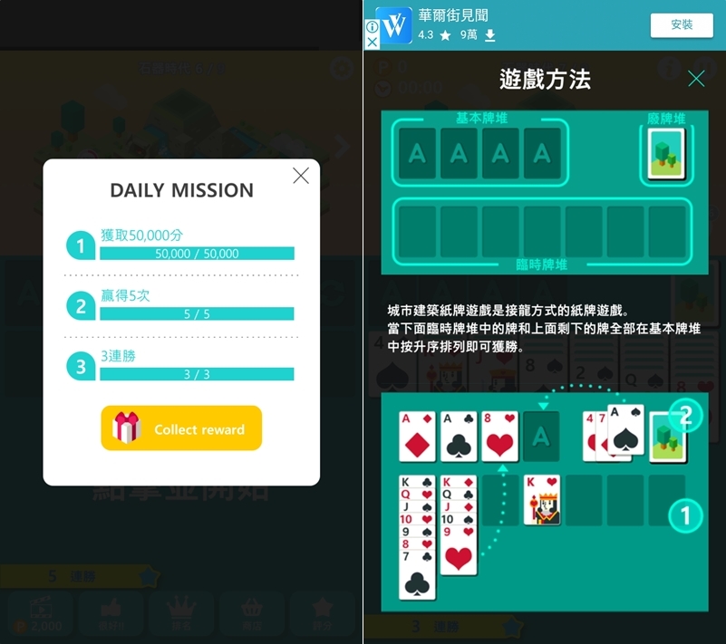 阿湯玩得沒有很專心,運氣也不太好所以花了一個小時才完成每日任務,但也還在石器時代,如果一開始忘了怎麼玩或是沒玩過接龍系列遊戲的人,也有提供遊戲方法讓你上手。