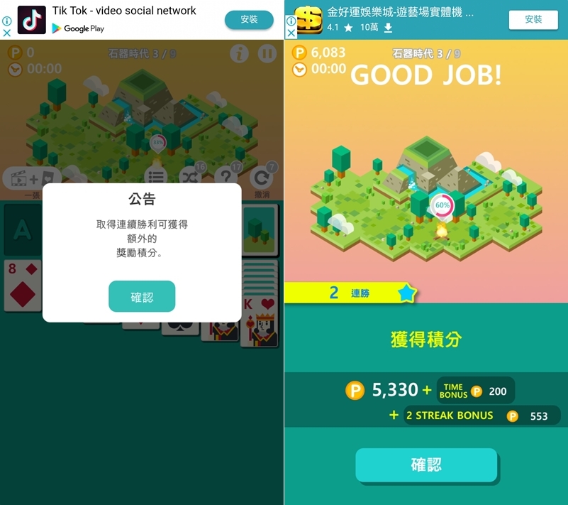 連勝可取得額外的獎勵積分,速度快也可以,就這樣慢慢玩慢慢蓋,等升級更新。