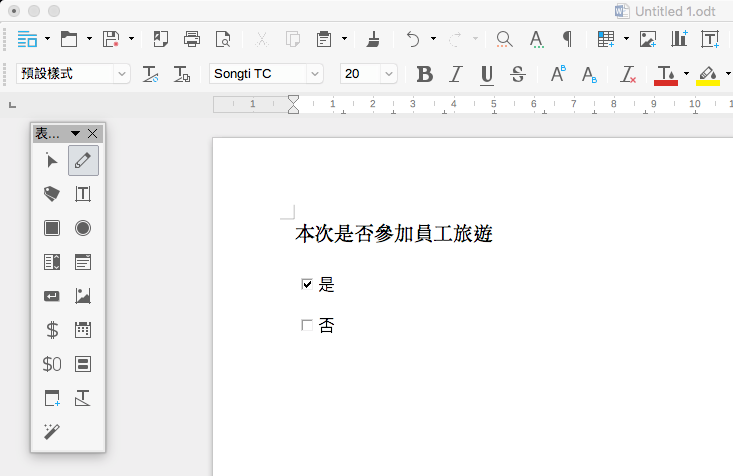 開啟空白檔案後輸入文字,再用一次核取方塊,這次就很好調整了,不過工具列其他功能感覺比較複雜,也不常用,如果有人有用過可以分享一下。