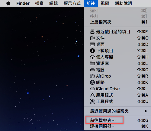 而關於 Mac 系統緩存,先到 Finder → 前往 → 前往檔案夾。