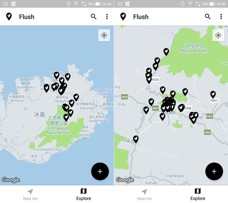 不過在台灣其實加油站和部分便利商店都有廁所,算是如廁很方便的地區,所以阿湯再找了好幾個國家,發現這款 APP 收集的國外資訊似乎比台灣豐富,例如香港、韓國、日本北海道,放大地圖看會更清楚。