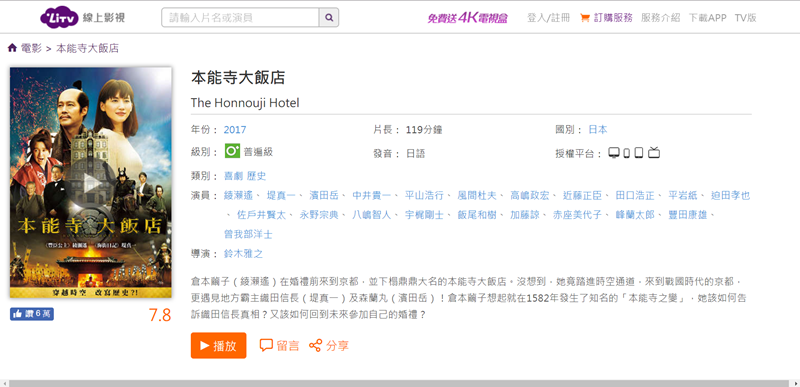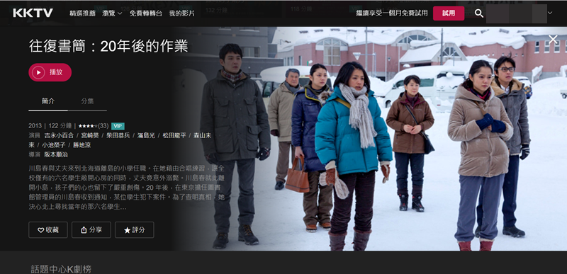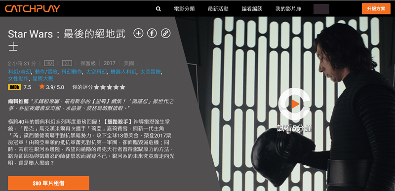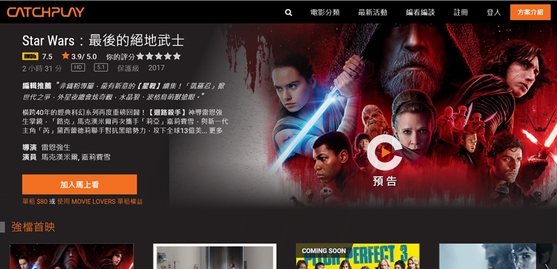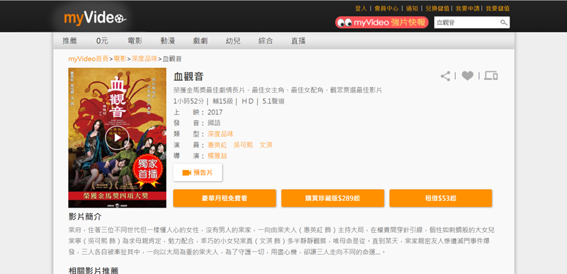 影片簡介部分就比較沒那麼囉嗦,也沒有特別評分,可以使用月租、購買或單片租借。