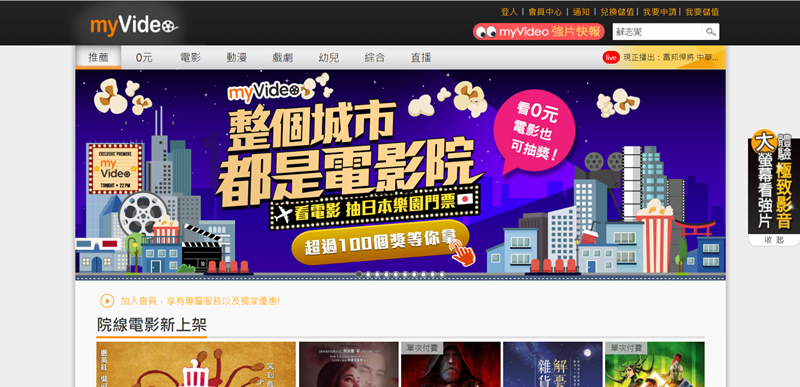 台灣大哥大建立的平台,接下來三大電信的配合平台阿湯都會介紹到,除了電影還有動漫、戲劇、幼兒、綜合或直播可選擇,阿湯用來看球賽直播還蠻順的,也有 0 元影片可線上收看。