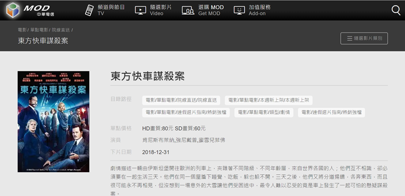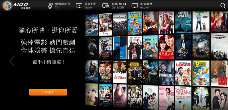 中華電信 MOD 的性質跟前面的有點不一樣,基本上比較多人是家裡的第四台用 MOD 才會選擇也用他們的影片平台。