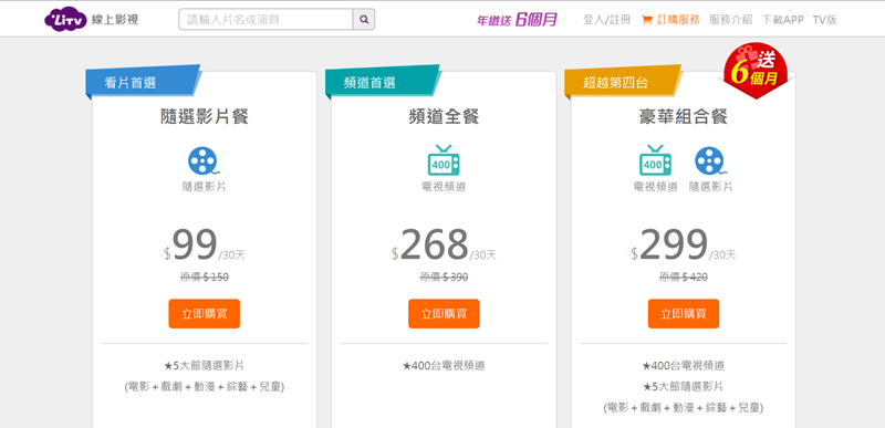 果然連到付費方案,可依照觀看需求選擇,看你常看影片或電視、或是都有,其實算起來蠻便宜的,有的平台租單片就要 80 元,如果花 99 元就算只是連假在使用也 OK。