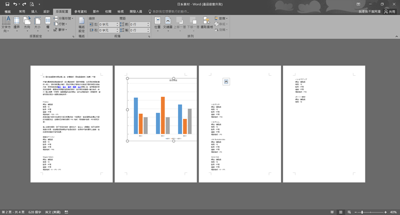 看另外一個例子,原始頁面共有四頁,第二頁中的圖表很明顯大小跑掉,一樣將它選取之後,開啟設定視窗。