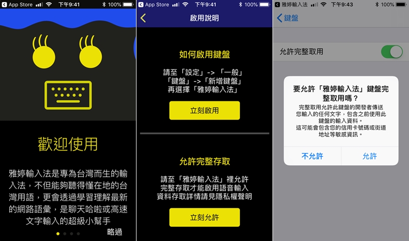 使用前需要開啟麥克風權限,並進入設定啟用鍵盤和完整存取,如果很在意隱私的朋友可能就要考慮一下。