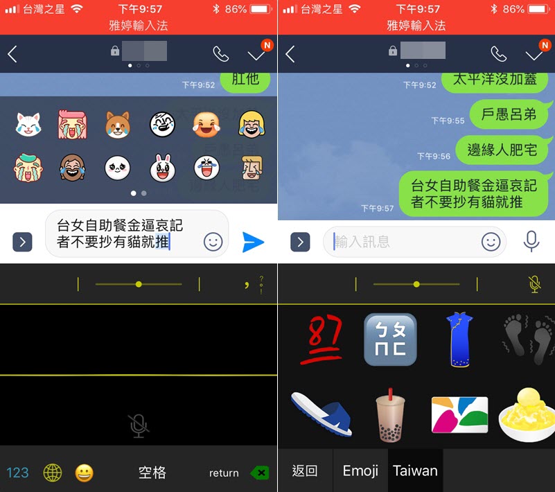 台灣味的 Emoji 可使用,雖然目前只有 iPhone 版,不過開發者還蠻努力在更新的,大家可以期待一下。