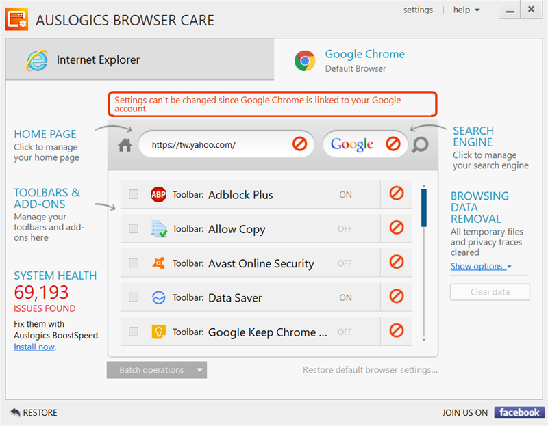 Auslogics Browser Care 使用介紹: