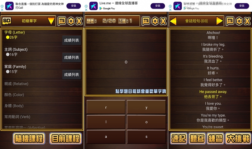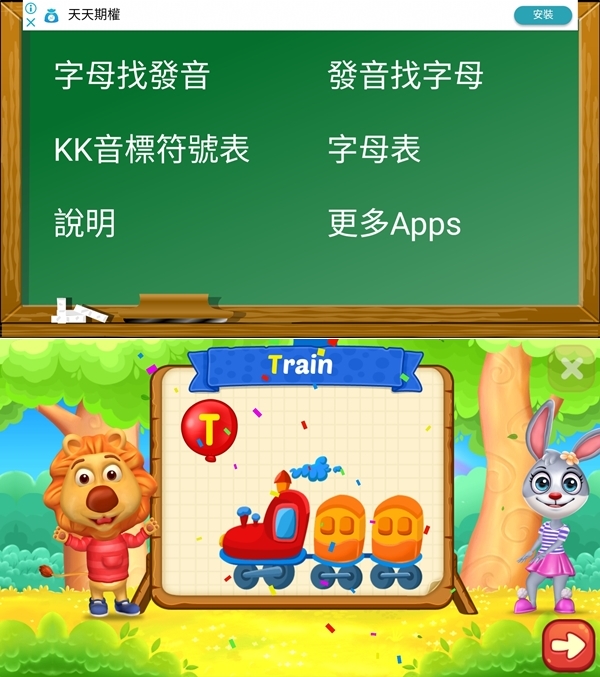 這款原本阿湯放在幼教類,後來覺得比較適合幼兒園以上,就是基礎的字母、生字和片語,有速記與聽寫等設計,不錯的英文入門 APP。