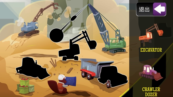 類似的拼圖遊戲很多,這款是認識物體並將圖片拖進去,並以英文名稱顯示,雖說讓孩子從小學英文,但有的阿湯覺得有點難啊,像怪手跟推土機如果那麼小就要背起來似乎不太適合,建議讓孩子有個印象就好。