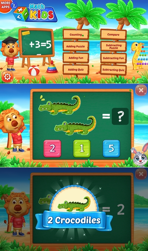 也是英文版的,簡單的加減法並搭配卡通圖片,有比較、算數、拼圖類,一邊學數學還能一邊學英文,對小朋友來說很划算。