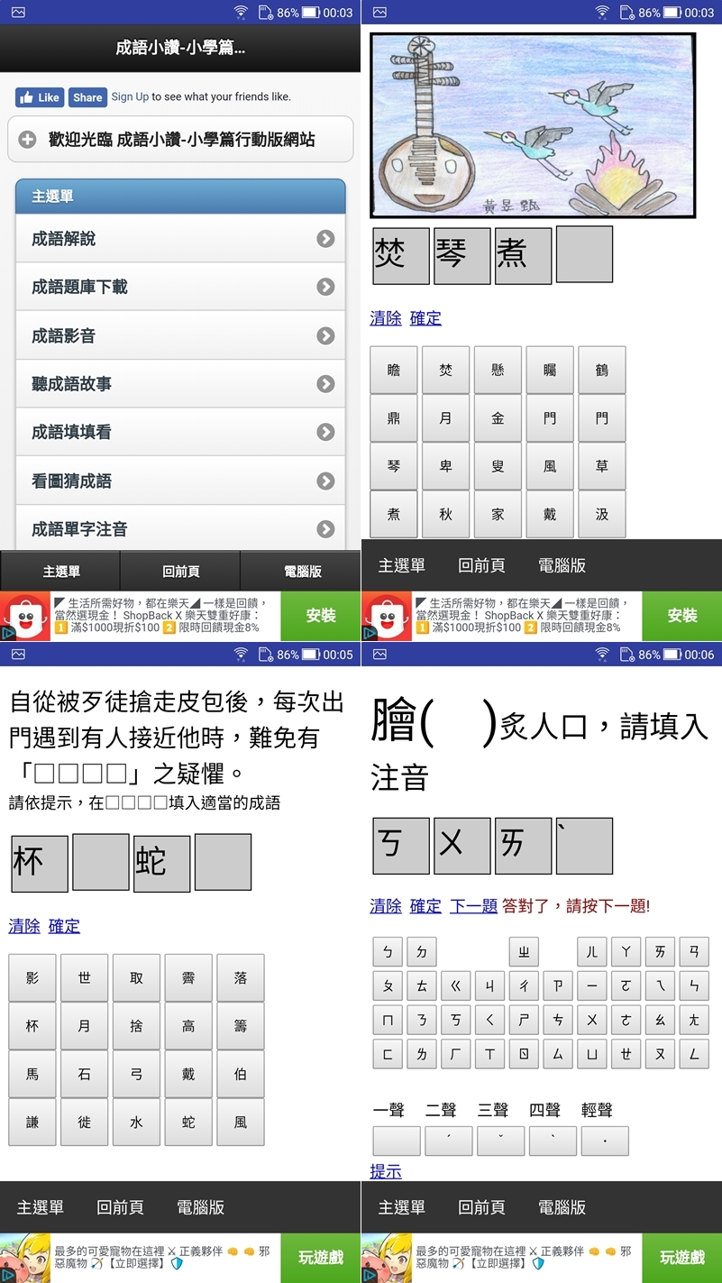 強調是小學篇,有解說、題庫、影音故事,也有常見的看圖猜成語及填填看,以及生字注音練習等等,真的不知道現在小學都教那麼難啊,不過更新時間是去年,是這篇少數今年尚未更新的,阿湯發現很多開發者是教師的更新速度都不勤,很多太久沒更新的阿湯就沒介紹了。